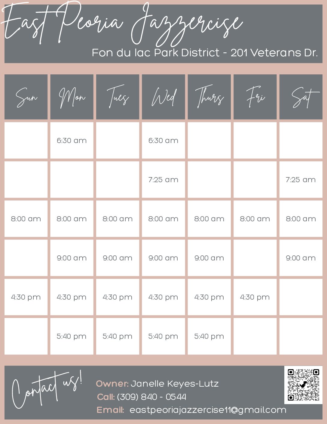 Janelle Keyes-Lutz (309) 840-0544 | eastpeoriajazzercise11@gmail.com